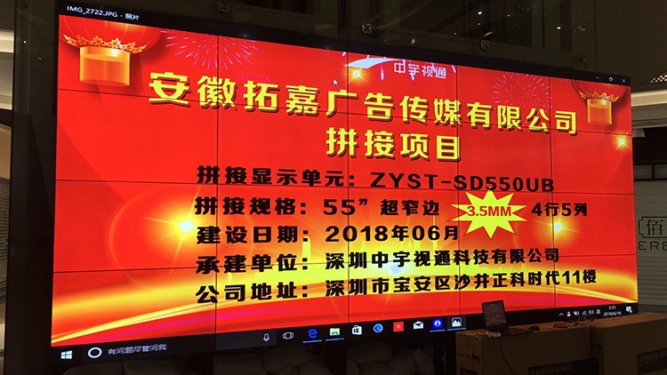 安徽拓嘉廣告傳媒55寸拼縫拼接屏項目